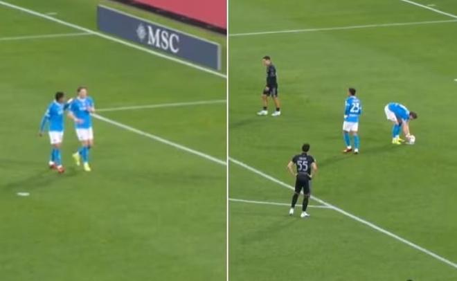 比赛的第83分钟,阿尔贝托-格拉西手球送点,那不勒斯获得点球机会。替补登场的焦瓦内想要主罚这个点球,不过遭到了本场已经打入一球的麦克托米奈的“阻止”,麦克托米奈最终拿到了这个点球的主罚权,不过他的点球缺乏速度,角度也不佳,被对方门将扑出。